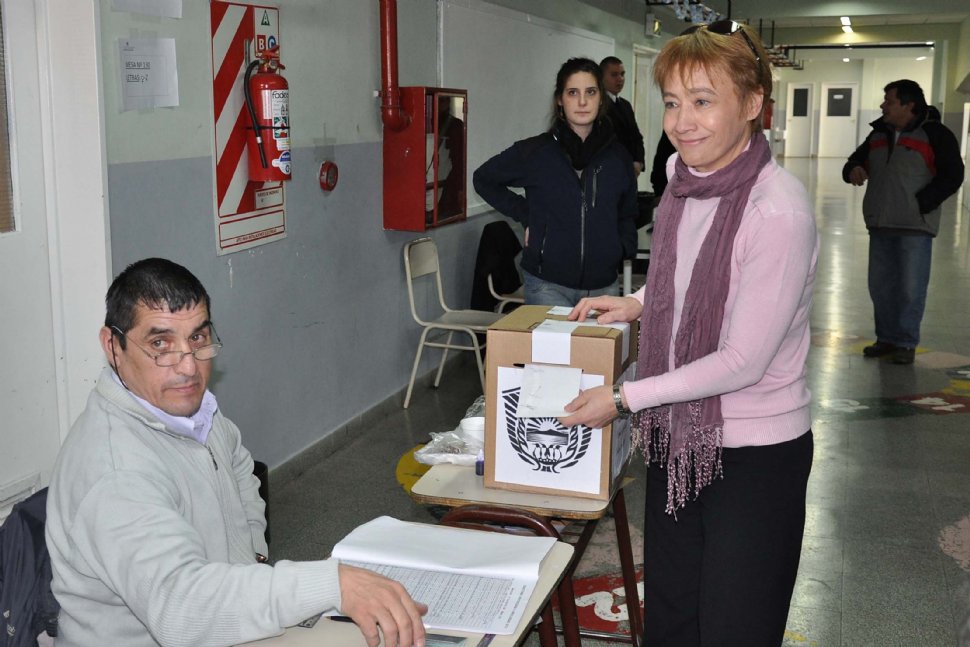 Bertone emitió su voto en la mesa 88 de la escuela 22 de Ushuaia, donde llegó acompañada del candidato a vicegobernador por el FpV, Martín Pérez. La postulante kirchnerista agradeció al pueblo fueguino "por habernos acompañado" y denunció la existencia de "boletas de otros partidos mezcladas con las del Frente para la Victoria". (NA-DyN)