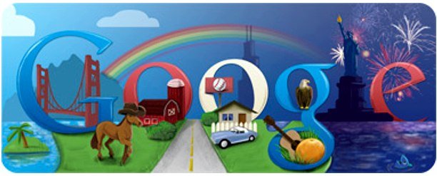 Hoy, 4 de julio de 2011, Google le dedica un colorido doodle a su país de origen. Sin embargo, el mismo sólo fue visible en la "tierra de la libertad". Los buscadores con sede en otros países del mundo quedaron sin poder ver la dedicatoria del gigante.