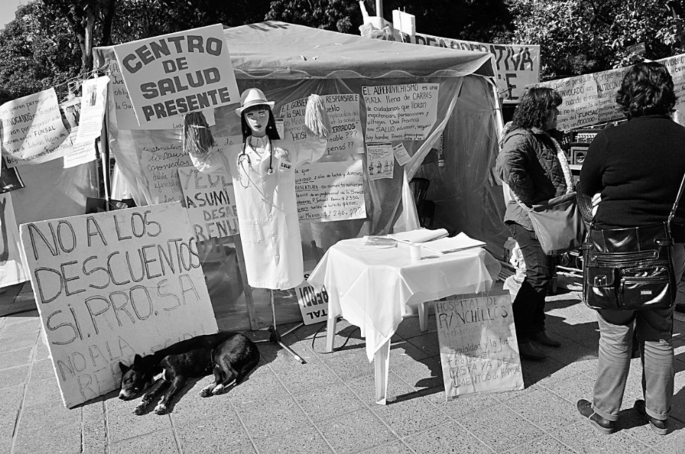 La actividad en la Carpa de la Dignidad ya había vuelto a la normalidad ayer. Allí, Nancy Alarcón, enfermera y delegada del Hospital de Garmendia, recordó las agresiones que sufrió el día anterior: Hombres a cara descubierta le tiraron un banquito contra el torso, la empujaron y la insultaron la madrugada del 9 de julio. La doctora Susana Sitjes recibió un corte en el mentón. Adriana Bueno y Marité Rodríguez denunciaron ser abusadas verbalmente.