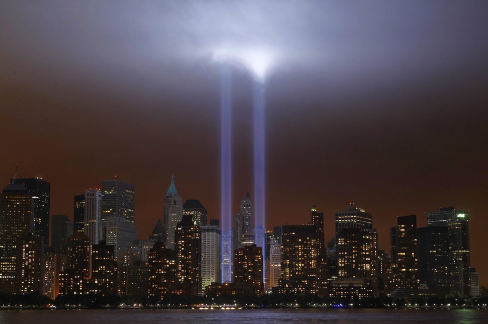 UN TRIBUTO DE LUZ. Dos haces de luz azul emergieron durante la noche del lugar donde estaban las Torres Gemelas y desaparecieron en el cielo, en un homenaje silencioso a todos aquellos que murieron el 11 de septiembre de 2001. REUTERS