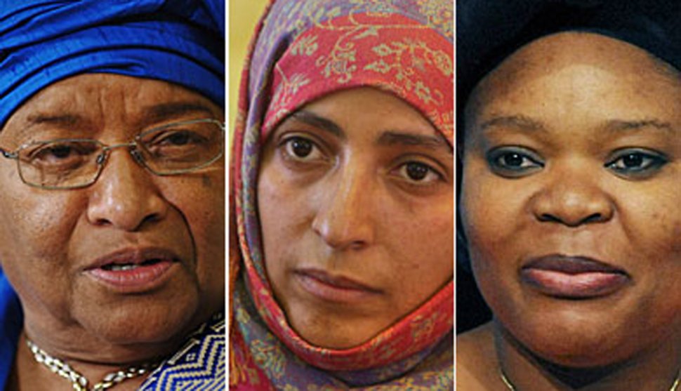 OSLO, Noruega.- La presidenta de Liberia, Ellen Johnson Sirleaf, y las activistas liberiana y yemení, Leymah Gbowee y Tawakkul Karman, fueron condecoradas hoy con el Premio Nobel de la Paz 2011. Así lo anunció el comité Nobel noruego en Oslo. Los tres nombres fueron electos con el mismo criterio: el papel de la mujer en el cambio político y social.