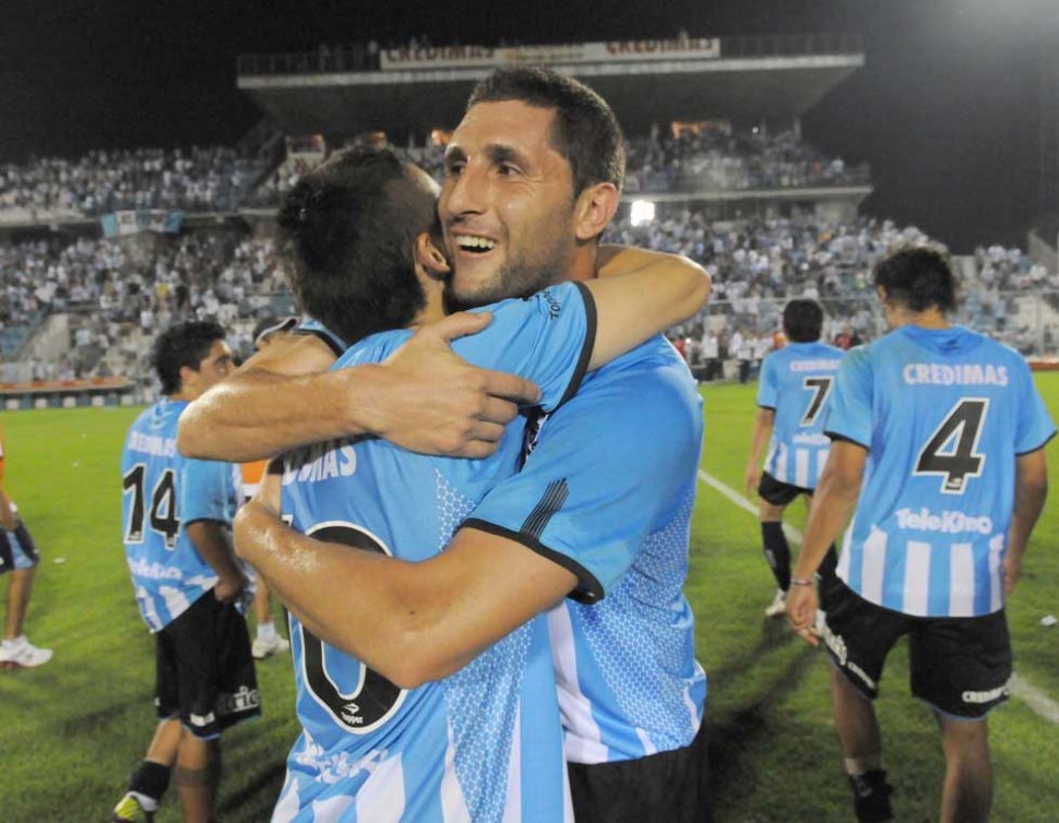 UN ABRAZO INTERMINABLE. Marcelo Mosset se abraza con Federico Barrionuevo mientras sus compañeros se retiran al vestuario felices por el triunfo.