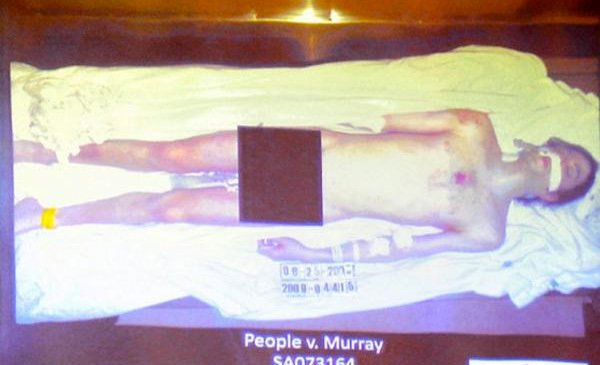 En las dos imágenes mostradas en el juicio y publicadas por el sitio TMZ.com, una del cuerpo completo del intérprete de "Thriller" y otra de su brazo, aparece la figura de un Jackson extremadamente delgado, con muchos pinchazos y con una herida en el pecho, una foto conmovedora que transmite la fragilidad del cuerpo de Jackson en el momento de su muerte. (Especial)