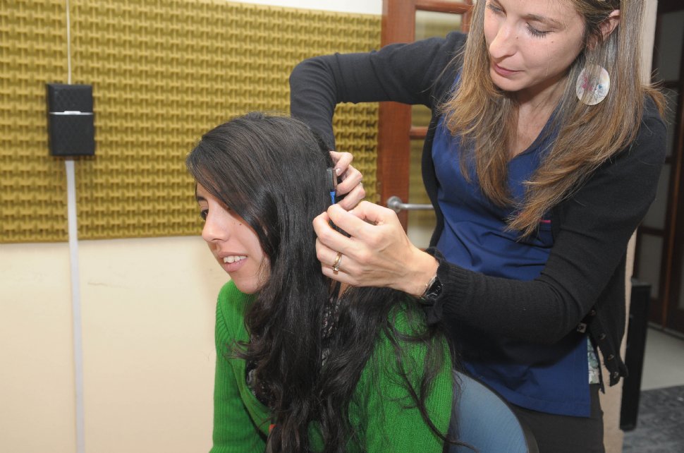 La tucumana Ana Victoria Camino, de 20 años, vivió ayer la mejor experiencia de su vida. A las 9.30, la fonoaudióloga Cecilia Lovrovich le acopló las piezas externas a los dispositivos osteointegrables que el doctor Victorio Stok le había implantado hace dos meses en el interior del cráneo, a la altura de los oídos. Este fue el último paso que quedaba por hacer para que Ana comenzara a escuchar con estereofonía auditiva.