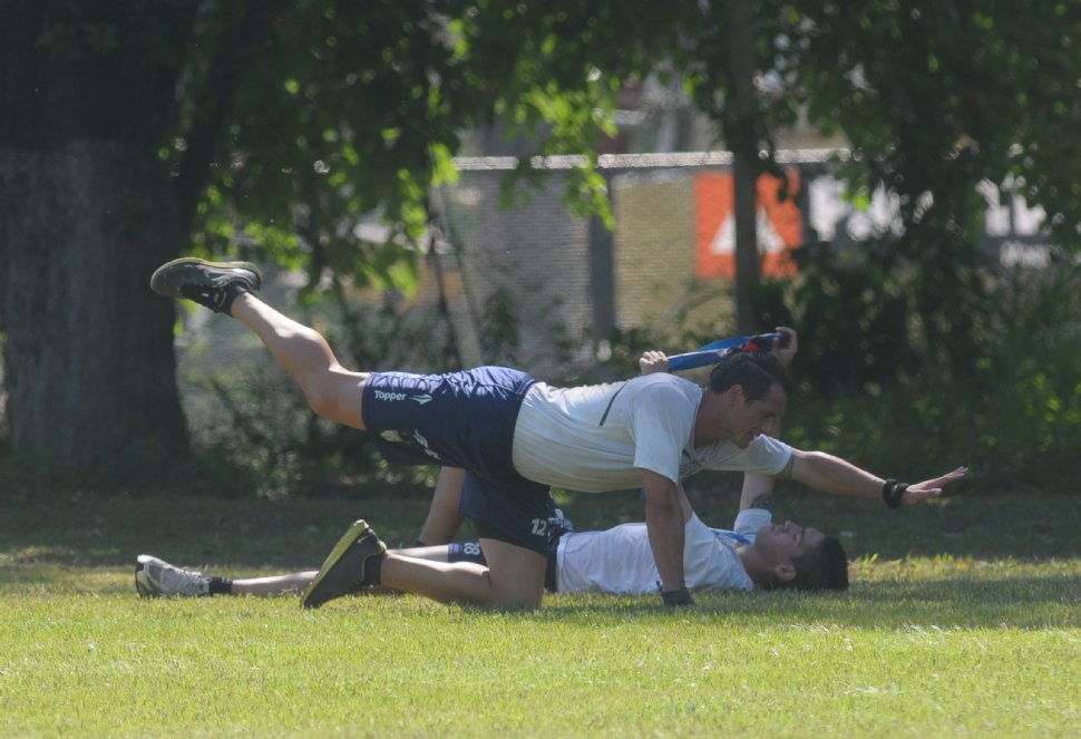 Otro tocado, aunque no por un virus, fue Deivis Barone: trató de imitar a sus compañeros en cada apartado de trabajo, pero lo terminó haciendo a media máquina. El motivo fue un golpe en la zona del cuadriceps, ante Ferro.
