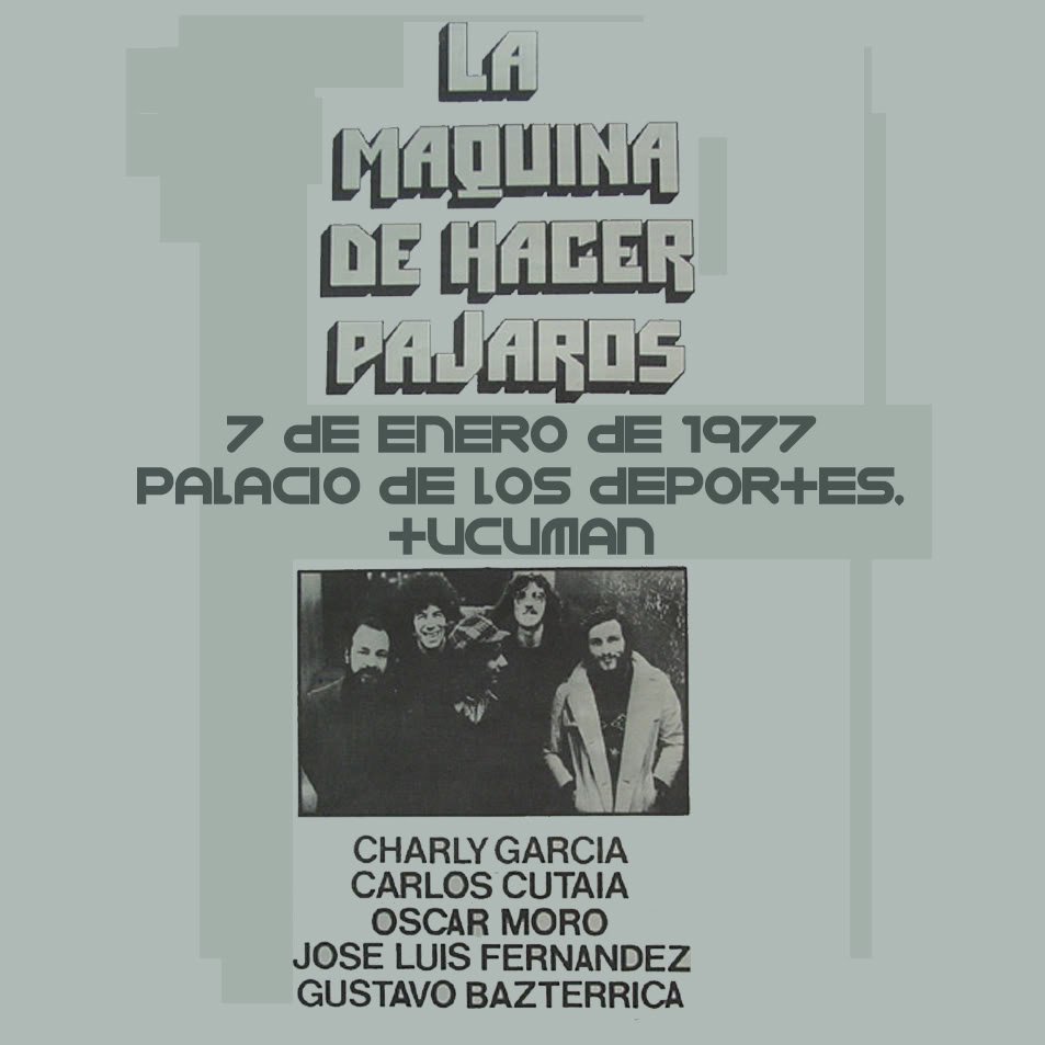 Enero de 1977. Ni mejor ni peor, sólo otro tiempo. Sin canas y sin anteojos, entre otras cosas. Un tiempo que se vivía con la avidez de quien descubre la magia del cine europeo y la música que llegaba de la mano de un grupo de jóvenes talentosos. Y confieso que (de ese día) no me acuerdo del entorno, mas sí de la música. Basta cerrar los ojos y tararear "Cómo mata el viento norte", mi predilecta, para que todo fluya. La máquina de hacer pájaros fue, según mi criterio, una formación alucinante que guiaba Charly García. Que, como todo lo bueno, duró poco. Pero fue muy intenso porque "La Máquina" sonaba como ninguna otra banda sonó en esa época: eran músicos que dejaban el alma.