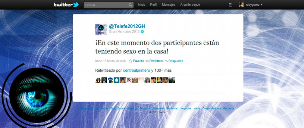 Twitter que había dos participantes teniendo sexo en el interior de la casa.