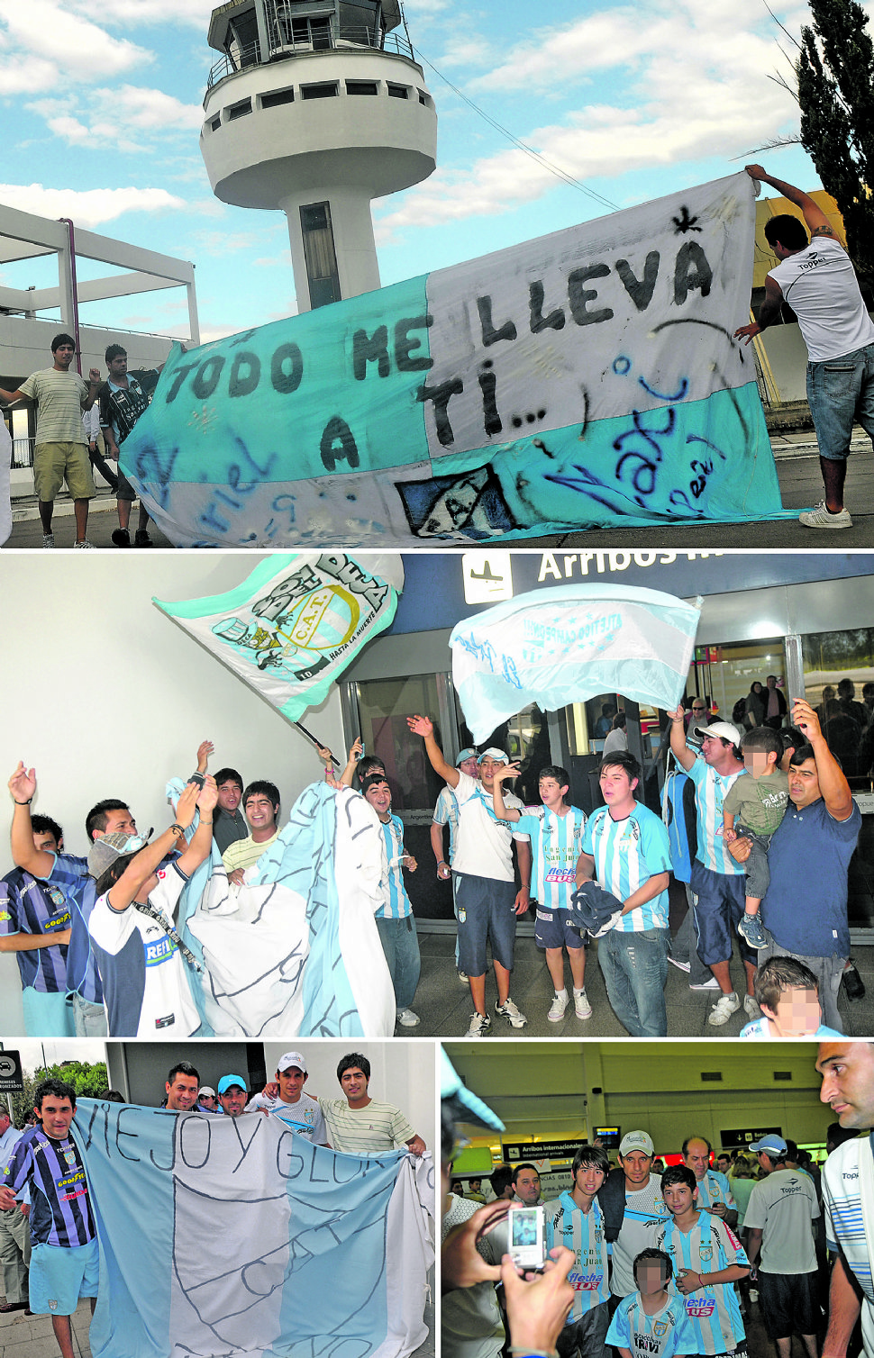 RECIBIDA x 4. Arriba los hinchas esperan en la torre de control; abajo, se fotografían con sus ídolos. LA GACETA / FOTO DE FRANCO VERA