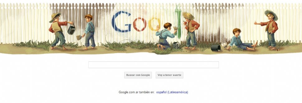 El personaje, que hoy protagoniza el doodle más largo creado por Google, fue creado por Twain en 1876. Justamente una de las escenas más famosas de la secuela está retratada en el homenaje del megabuscador. Se trata de la ocasión en que la tía de Tom lo catiga y le ordena pintar la cerca. Ni lento ni peresozo, el astuto niño recurre a sus amigos, a quienes convence de lo divertido que resultaría acompañarlo en sus tareas. Al final del día, Sawyer había sido el único que no trabajo. Un momento memorable de lo que comenzó como un libro y mutó a una serie animada para, más adelante, llegar a la pantalla grande.