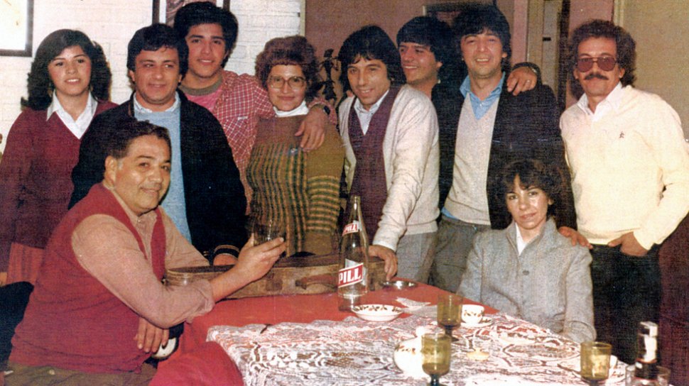 EN FAMILIA. Leoni, Franco, Ricky, Febro y Bosco -Los Iracundos- junto con papá Ricardo (sentado), mamá Blanca (de anteojos) y María Seu (sentada). GENTILEZA FAMILIA PARRADO