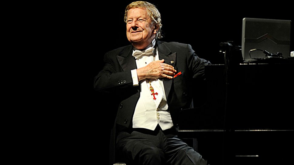 Poco antes de la medianoche, Gabriel se acercó a las bambalinas y, mientras estallaba la ovación, acompañó a su abuelo, quien lenta y trabajosamente caminó hacia el piano. Sus casi 94 años pesaban... hasta que se sentó. Y entonces todo cambió. Agradeció con una gran sonrisa a los espectadores (sus "amigos de siempre") con palabras y con ese gesto tan suyo de meter la mano en el frac y darse pequeños golpes sobre el corazón. Luego comenzó a devorar con los dedos el teclado del piano mientras Gardel, desde la pantalla, cantaba Volver. Después... de todo. Extensa recorrida por el tesoro musical de don Mariano y por tesoros "prestados": Cafetín de Buenos Aires, Quejas de bandoneón, Cuartito azul, La Cumparsita, La Tablada, La calesita, Taquito Militar, Tanguera, Garufa... Y Uno, parte del show en la que abuelo y nieto homenajean a "Nito" (padre de Gabriel, fallecido en 1984) y cantan, gracias a un nuevo video, "con él". (Se entiende, entonces, la gravedad del "problema técnico" que había demorado el inicio).