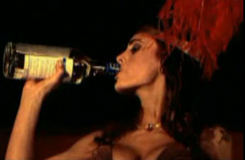 La ex Gran Hermano protagonizó un clip para "Intrusos en la Noche", en la que se la puede ver con poca ropa y, otra vez, tomando del pico de una botella
