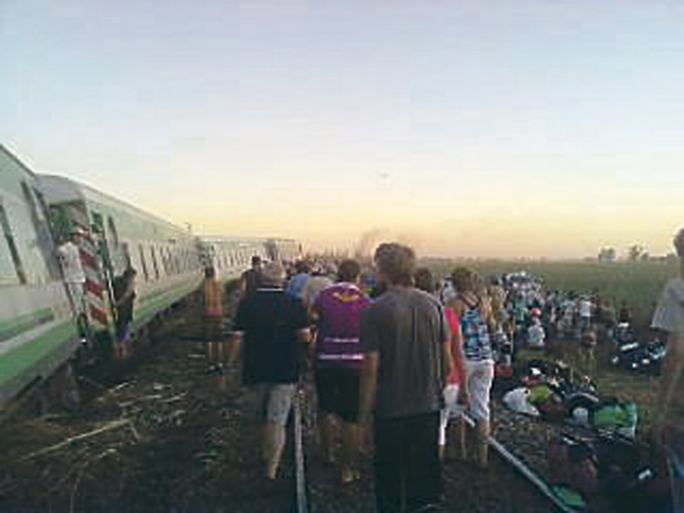 El convoy descarriló cerca de la localidad santafecina de Serodino, a unos 60 kilómetros de Rosario. Los pasajeros descendieron, asustados, y custodiaron sus pertenencias al lado del tren.