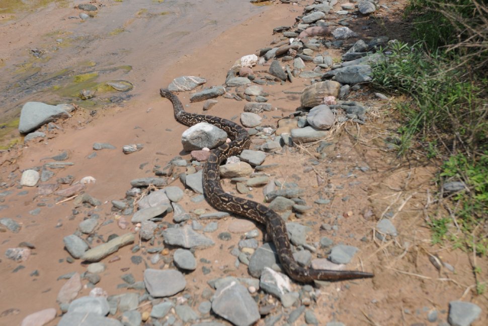 DE UNA BOLSA AL ARROYO. La lampalagua fue dejada cuidadosamente en el suelo y se escondió entre los arbustos. DE UNA BOLSA AL ARROYO. La lampalagua fue dejada cuidadosamente en el suelo y se escondió entre los arbustos.