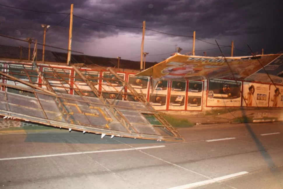 RÁFAGAS. Hasta los carteles más grandes fueron presa del intenso vendaval, no hubo ninguna persona herida. LA GACETA / FOTO DE EZEQUIEL LAZARTE