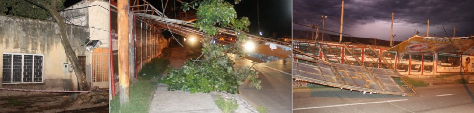 En Oyeros al 1.200, un añoso eucalíptus se desplomó sobre una humilde vivienda, destruyendo una precaria tapia y el baño. En San Martín al 2.000, en tanto, una casa se quedó sin techo, por lo que sus ocupantes permanecieron afuera durante toda la noche.
