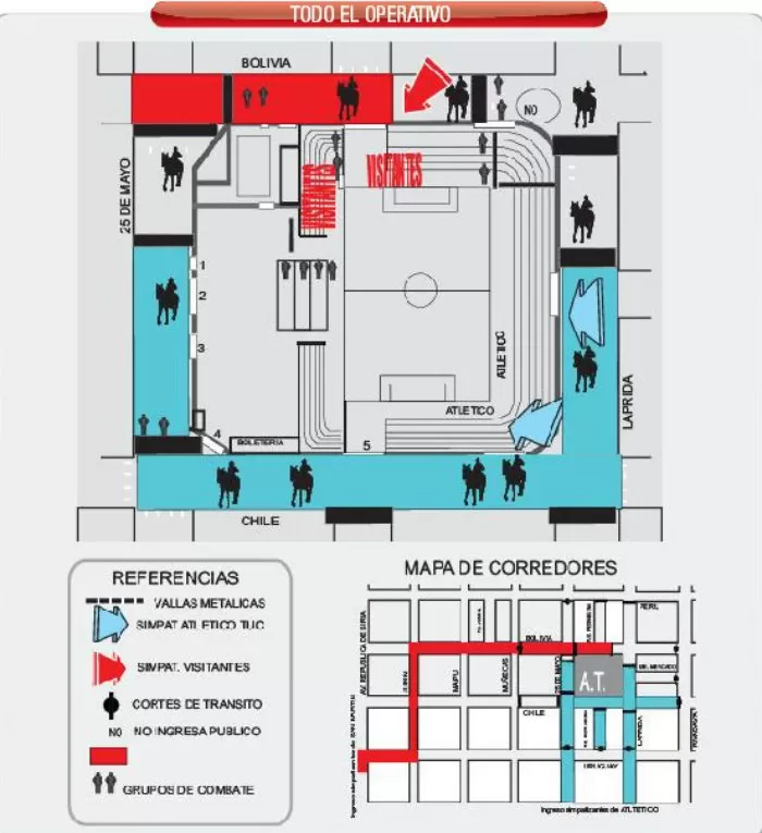 - Habrá un vallado en la zona del estadio para evitar que ingrese público sin entrada. No se permitirá la venta de bebidas alcohólicas en los comercios de la zona y al público no se le permitirá ingresar con elementos que puedan ser utilizados como proyectiles.