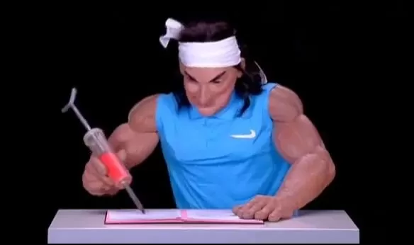 Paul Gasol, Iker Casillas y Rafael Nadal fueron las víctimas escogidas por la señal francesa para mostrar en una situación incómoda, firmando autógrafos, no con lapiceras, sino con jeringas.