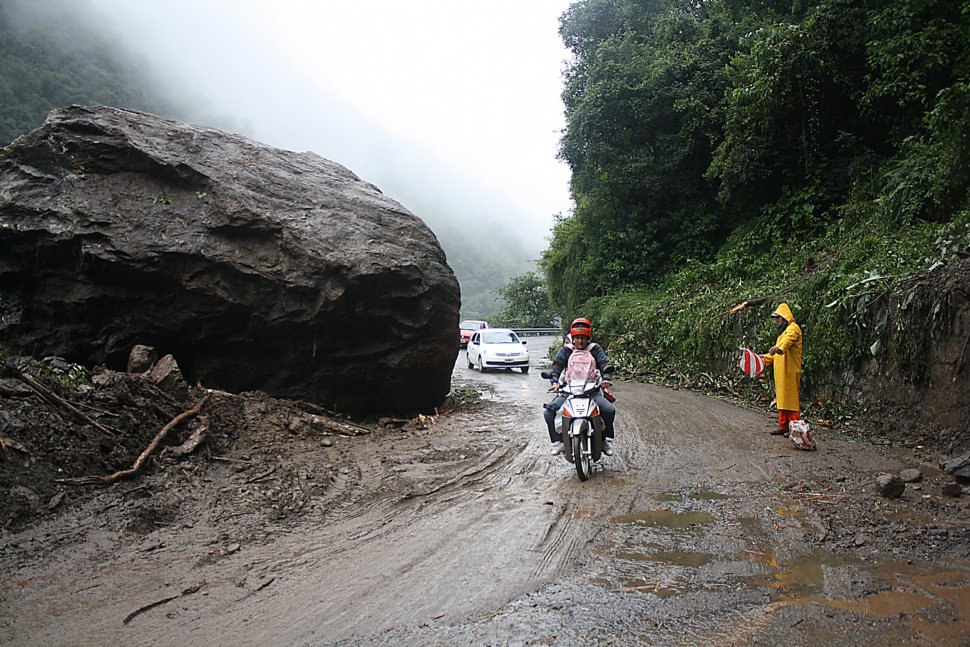 Una roca gigante, de unos ocho metros de ancho por cuatro o cinco de alto, se desprendió de la montaña el miércoles y cayó justo en medio del camino. Quedó liberado un espacio apenas suficiente para que transite un solo vehículo (y que no sea muy grande). Cualquier desafortunado que hubiera transitado por ahí ese día hubiese muerto. Por suerte la ruta estaba solitaria en ese momento.
