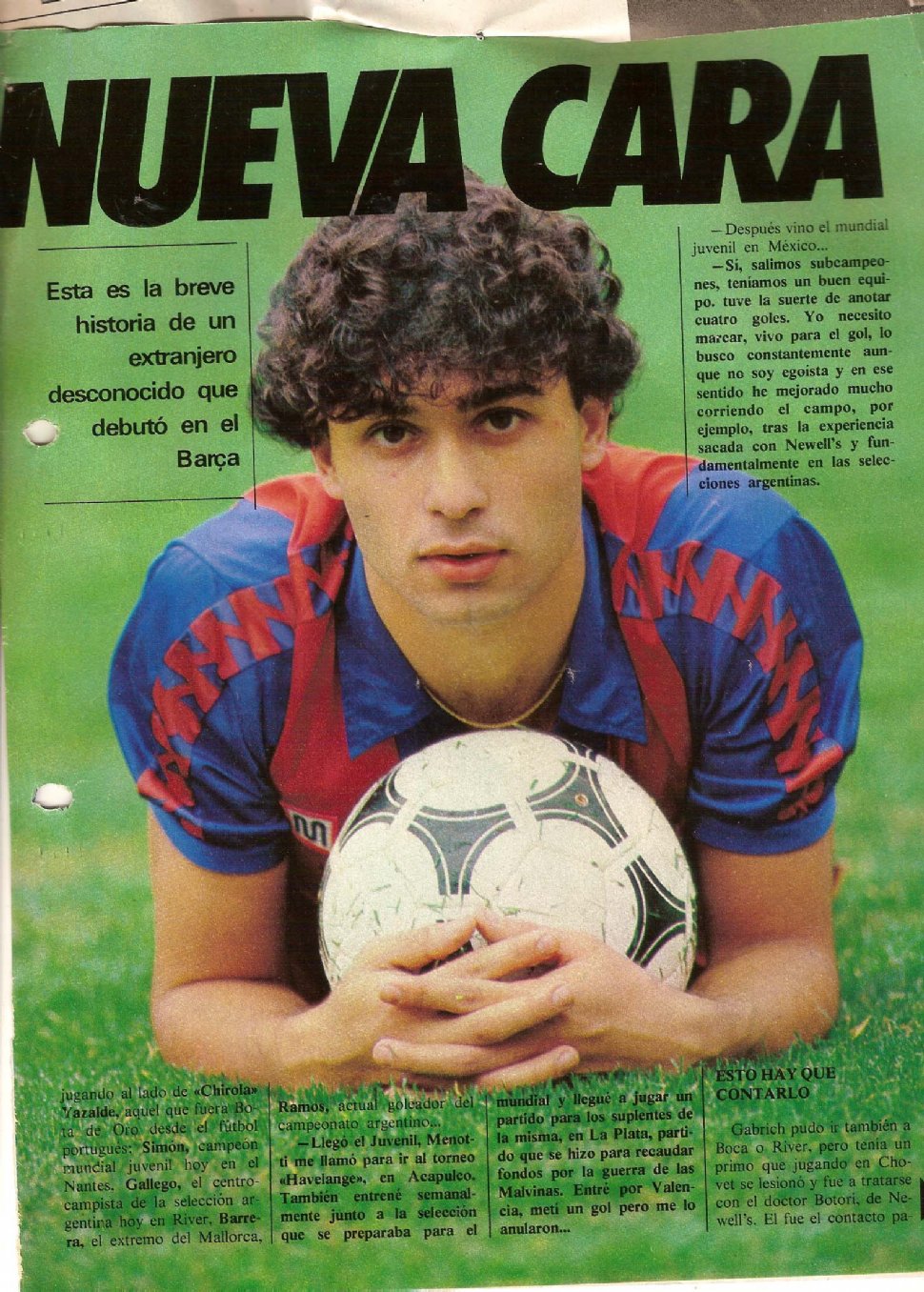 El tiempo voló, su carrera también, sin embargo, Jorge Gabrich tiene poco de qué arrepentirse. Es más, hasta podría tirarse a chanta y decir: "Barcelona me contrató a mí para reemplazar a Diego". Tiene razón. Él fue el segundo argentino en ponerse la blaugrana; el primero en la lista del "Flaco" Menotti para suplir a "D10S" mientras se recuperaba de la lesión de su tobillo, entrados los 80.