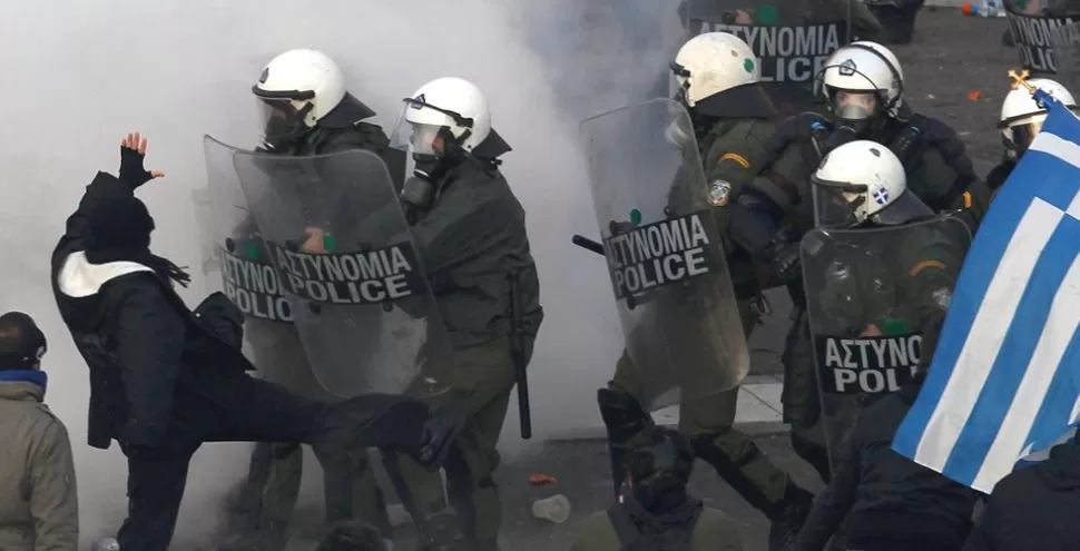 ATENAS, Grecia.- La policía griega arrojó hoy gases lacrimógenos a miles manifestantes que lanzaban piedras y bombas molotov en las inmediaciones del Parlamento en Atenas, mientras los legisladores debatían un nuevo paquete de ajustes exigido por la Unión Europea (UE) y por el Fondo Monetario Internacional (FMI) a cambio de un segundo rescate financiero.