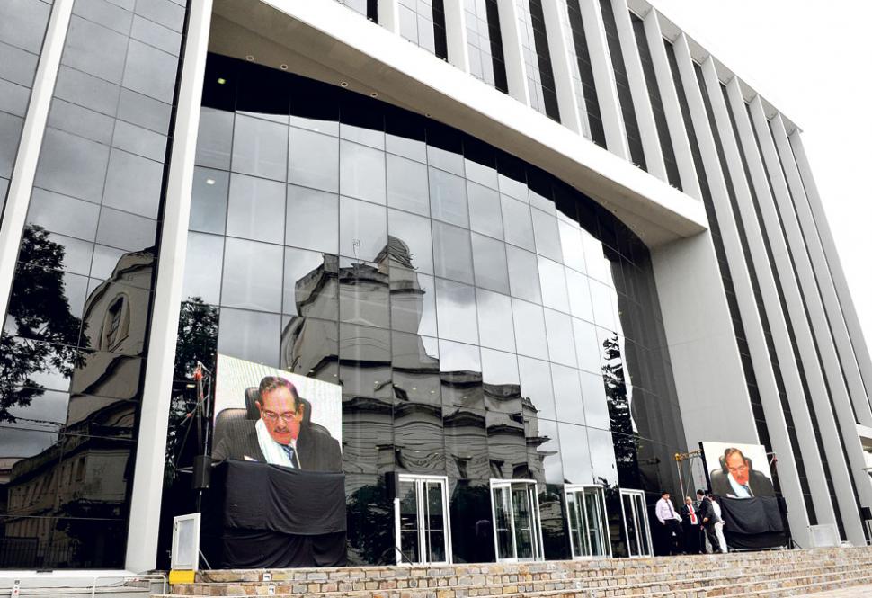 EN TODOS LADOS. El discurso del mandatario provincial pudo seguirse desde varias pantallas dispuestas fuera y dentro del edificio de la nueva Legislatura. LA GACETA / FOTO DE JORGE OLMOS SGROSSO