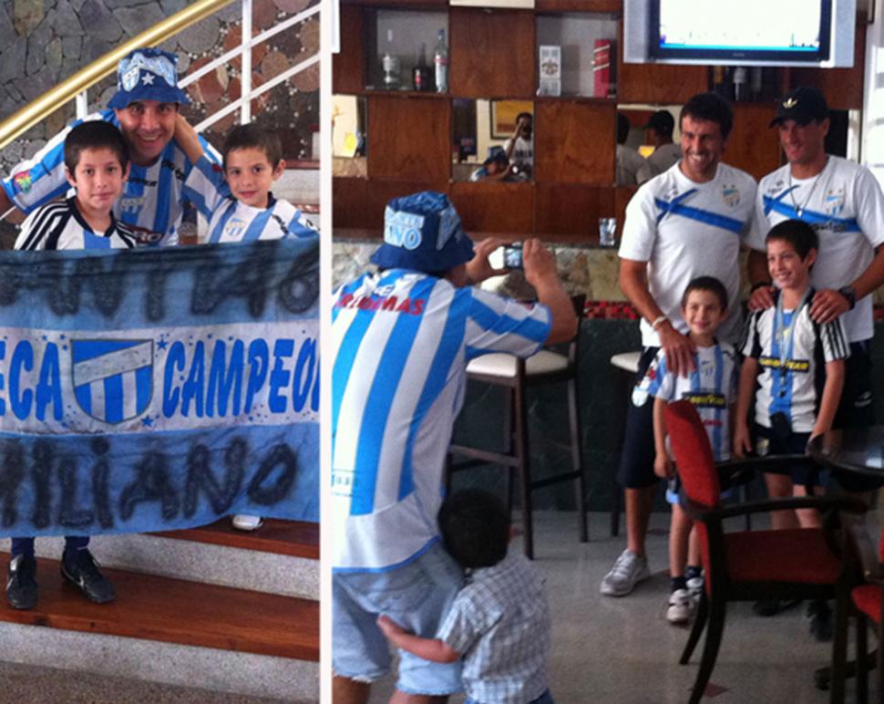 "Nosotros (por los tucumanos) somos un poco más complicados", analiza con un gorro celeste y blanco estilo Gilligan, aunque mantiene la seriedad de un profesional de la salud mental. Silvio Iuvalé y Mariano Martínez son las primeras víctimas de los Jordán, que luego se fueron en caravana al estadio "23 de Agosto". Con su bandera, Fernando le saca una foto con los ídolos albicelestes a sus herederos mayores, mientras que su pequeño está asustado y prefiere aferrarse a la pierna del improvisado papá fotógrafo en vez de colarse en una placa para la posteridad. ¡Chan!La foto ya está guardada, pero no la pasión. "Estuvimos contra River, en el Monumental... Te digo ese partido porque sí. Cuando podemos, agarramos la camioneta y vamos a todos lados a seguir a Atlético", asegura Fernando, como dejando en claro que a la distancia también se puede estar pegado al color de tus amores.