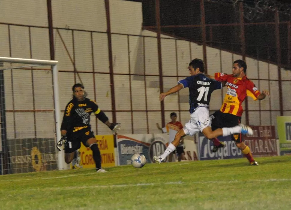 TAPA FUNDAMENTAL. Sebastián Longo remata, Gastón Sessa, se tapa. Era el primer minuto del partido. MIIGUEL VALENZUELA (ESPECIAL PARA LA GACETA)