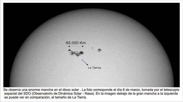 El Observatorio Astronómico de Ampimpa informó a LA GACETA que el actual ciclo solar (número 24) ya está en marcha y acelerándose. En un estudio explican que casi a diario el sol muestra signos de actividad creciente en su superficie, que no son sino manifestaciones visibles de complejos fenómenos que están ocurriendo en su interior. "Entre el 2 y el 12 de marzo, por efecto de la rotación del sol, pudo verse atravesar el disco solar una gran mancha oscura de un tamaño 5 a 6 veces el diámetro de la Tierra. Estas zonas oscuras son regiones con una temperatura ligeramente inferior al resto de la superficie (por eso son oscuras) y están asociadas con fuertes perturbaciones magnéticas. Alcanzan un máximo de actividad cada 11 años. El anterior máximo fue en 2001, y ahora estamos en un nuevo pico de actividad solar", destacó el Observatorio. Esta mancha solar - agregan- ha estado asociada con una fuerte explosión, el 5 de marzo, que alcanzó la categoría "X1" (nivel muy fuerte). Sostienen además que este incremento en la actividad solar tiene una influencia notable en el "clima espacial" próximo a nuestro planeta. Por ello es posible que durante estos años se vean afectadas las comunicaciones que dependen de satélites orbitales. También aumentará la frecuencia de las auroras boreales (fenómenos del Hemisferio Norte). A nivel de la superficie terrestre los efectos serán muy escasos, ya que estamos protegidos por diferentes componentes de nuestra atmósfera, entre ellos la ionósfera, la capa de ozono, la magnetósfera y los Cinturones de Van Allen. Durante 2012 y 2013 los campamentos científicos en el Observatorio incluirán actividades especiales referidas al Máximo Solar (para estudiantes y docentes). Más datos en www.astrotuc.com.ar.