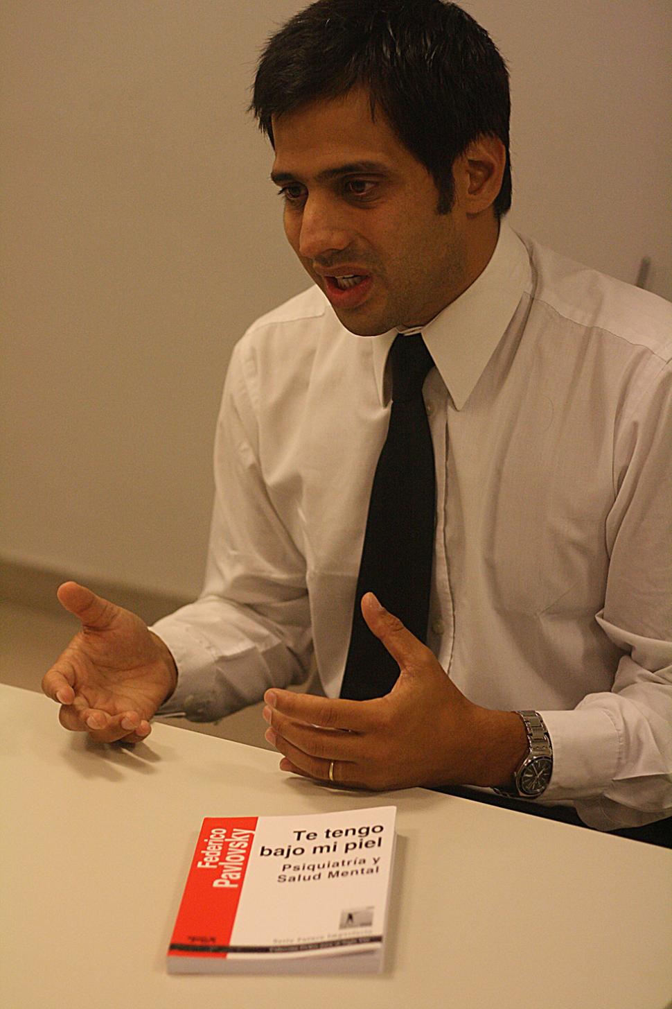 "Un psiquiatra encapsulado en su propio delirio profesional no tendrá el tiempo mental ni la fuerza para manejarse en la sociedad en la que vive. Es indispensable pensar la práctica inmerso en el entramado social". Apasionado, mucho más joven de lo imaginado, buen orador. El doctor Federico Pavlovsky vino a Tucumán para presentar su libro ("el primero -dice sonriente-. Sueño con ser escritor"), llamado "Te tengo bajo mi piel. Psiquiatría y Salud Mental". Visitó LA GACETA y casi no hicieron falta preguntas. Tiene claro qué decir y por qué.