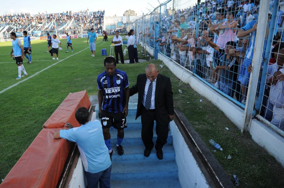 LLENO DE MIRADAS. Jairo baja del túnel casi custodiado mientras los plateístas descargan su bronca contra él. LA GACETA / FOTO DE FRANCO VERA