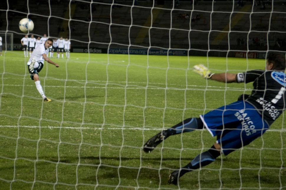 INALCANZABLE. Fuerza y colocación, las claves de la ejecución de Espínola, que significó el pase a cuartos de final de la Copa Argentina. "Decanos" felices. FOTO DE MARIO QUIROGA (ESPECIAL PARA LA GACETA)