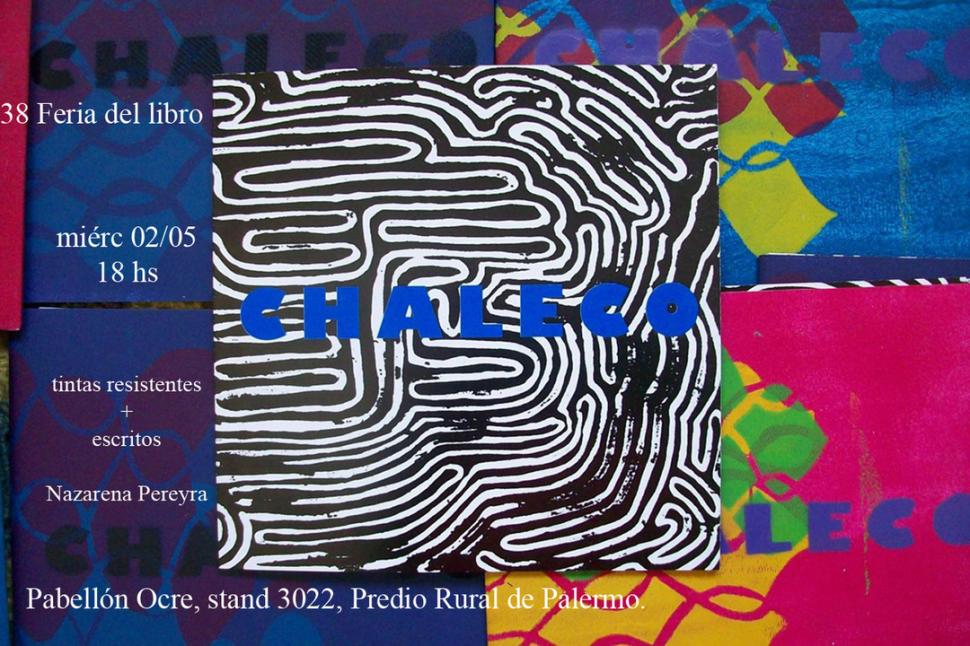 Hoy a las 18, en el Pabellón Ocre de la Feria del Libro (ubicada en el Predio Rural de Palermo) se presentará "Chaleco", libro de la artista Nazarena Pereyra. La publicación incluye imágenes realizadas en tinta resistente y textos poéticos.
