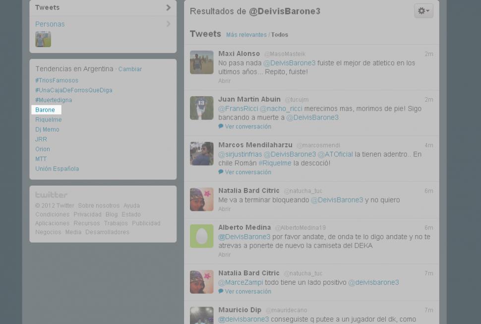 El defensor, que tiene cuenta en la red de 140 caracterers (@DeivisBarone3), recibió diversos tipos de menciones por su interversión. Principalmente fueron mensajes de apoyo. "¡No pasa nada animal! Jugaste un partidazo. Gran campaña de Atlético en la Copa a pesar de tantas lesiones"; "¡Fuerza Deivis! Jugaron un partidazo, no merecían perder. ¡Gracias por todo lo que le das siempre al equipo! ¡Estamos con vos siempre!", son algunos de los tuits que recibió. LA GACETA ©