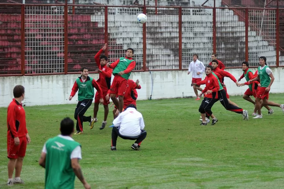 CHANCE. Diego Núñez, que cabecea una pelota durante la práctica, reemplazará a Gustavo Balvorín. LA GACETA / FOTO DE ANALÍA JARAMILLO