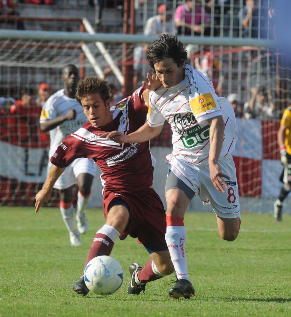 NO FUE SU TARDE. Lucas Oviedo corre con el balón pero se lo sacará Ferrari, quien lo controló bien en el partido. LA GACETA / FOTO DE ENRIQUE GALÍNDEZ