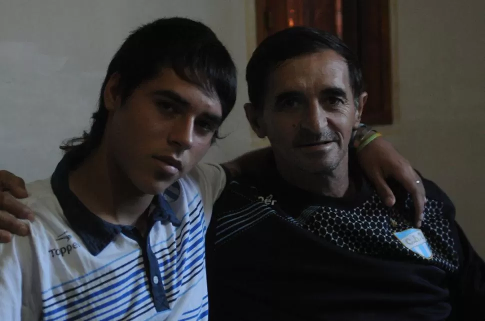 JUNTOS A LA PAR. Leonardo abraza a su papá, quien para los hinchas de Atlético siempre será el "Correcaminos", el que se cansó de brindarles felicidad y ahora lucha por la suya. LA GACETA / FOTOS DE EZEQUIEL LAZARTE