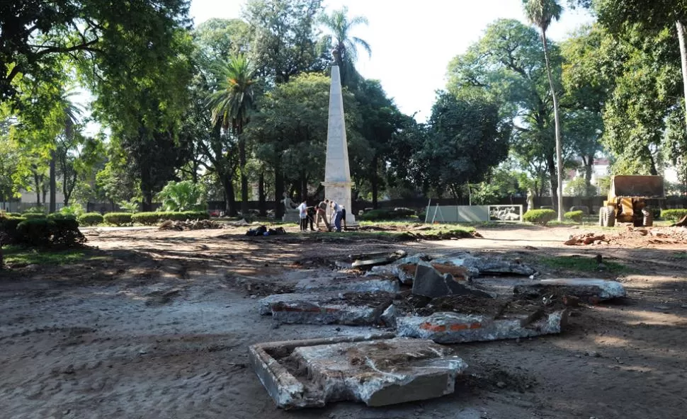 ¿LA RECONOCÉS? Las máquinas ya pasaron por el sector central y el único elemento que recuerda cómo era la plaza en el pasado es el monumento. LA GACETA / FOTOS DE INES QUINTEROS ORIO ¿LA RECONOCÉS? Las máquinas ya pasaron por el sector central y el único elemento que recuerda cómo era la plaza en el pasado es el monumento. LA GACETA / FOTOS DE INES QUINTEROS ORIO