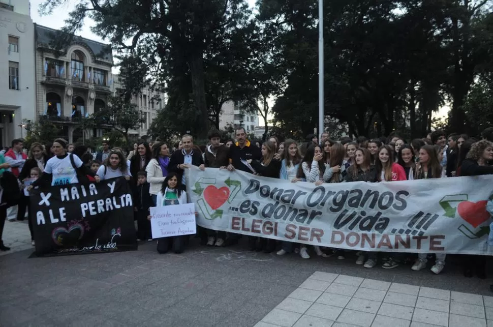 TODOS PODEMOS. El sábado se realizó un abrazo simbólico en la plaza Independencia para pedir por Rosarito y para concientizar sobre la donación. LA GACETA / FOTO DE EZEQUIEL LAZARTE