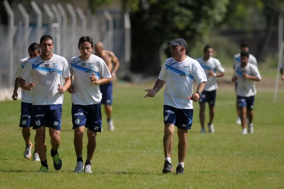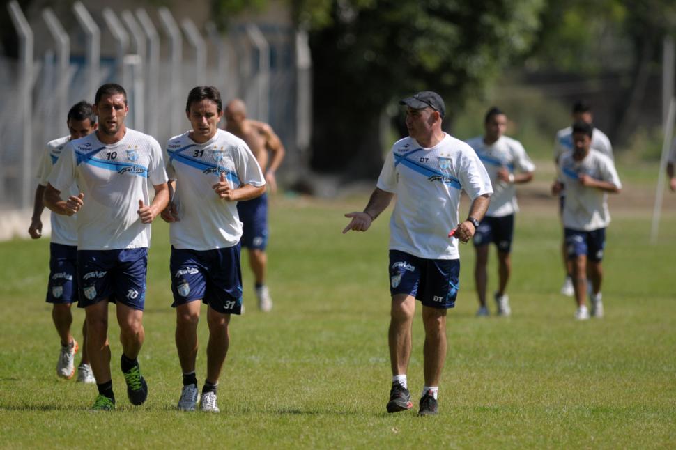 ATENCIÓN. Mosset y Barrado corren a la par de Llop, que parece estar dándoles indicaciones pensando en el duelo del domingo, a las 16, con Patronato. LA GACETA / FOTO DE INéS QUINTEROS ORIO