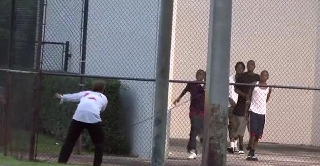 AL ACECHO. El bromista disfrazado causó pavor entre los transeúntes. CAPTURA DE VIDEO