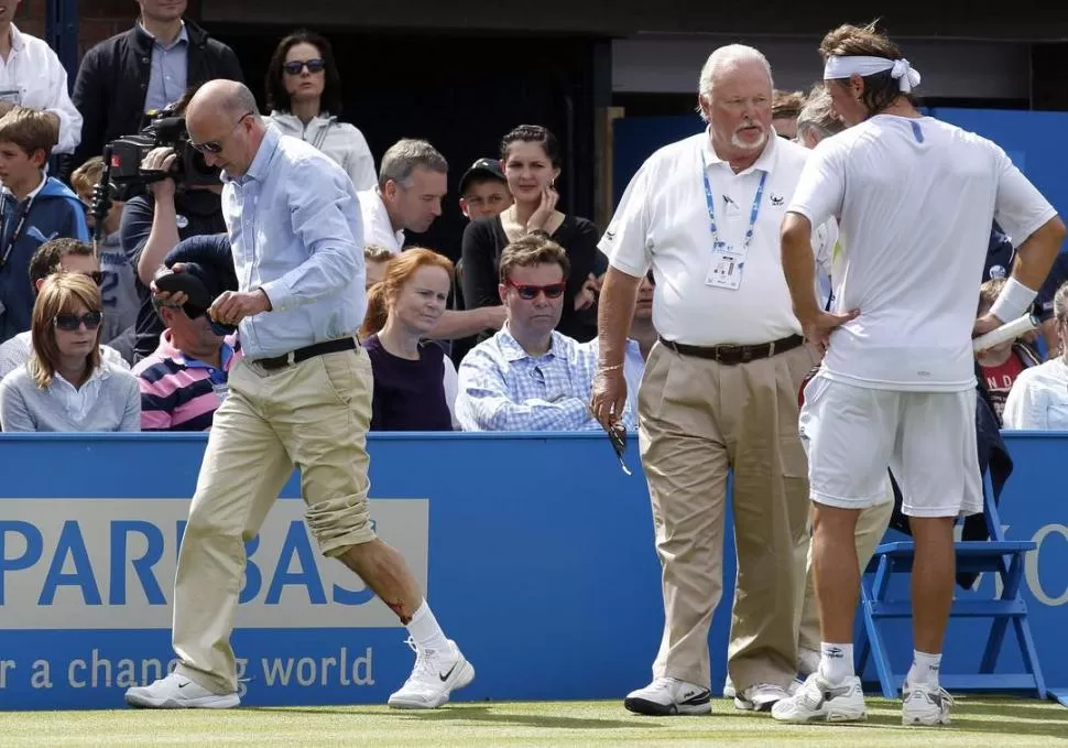 INCREÍBLE. El juez de línea McDougall se retira con la pierna lastimada y su orgullo herido por la agresión de Nalbandian. Las consecuencia serán graves. REUTERS INCREÍBLE. El juez de línea McDougall se retira con la pierna lastimada y su orgullo herido por la agresión de Nalbandian. Las consecuencia serán graves. REUTERS