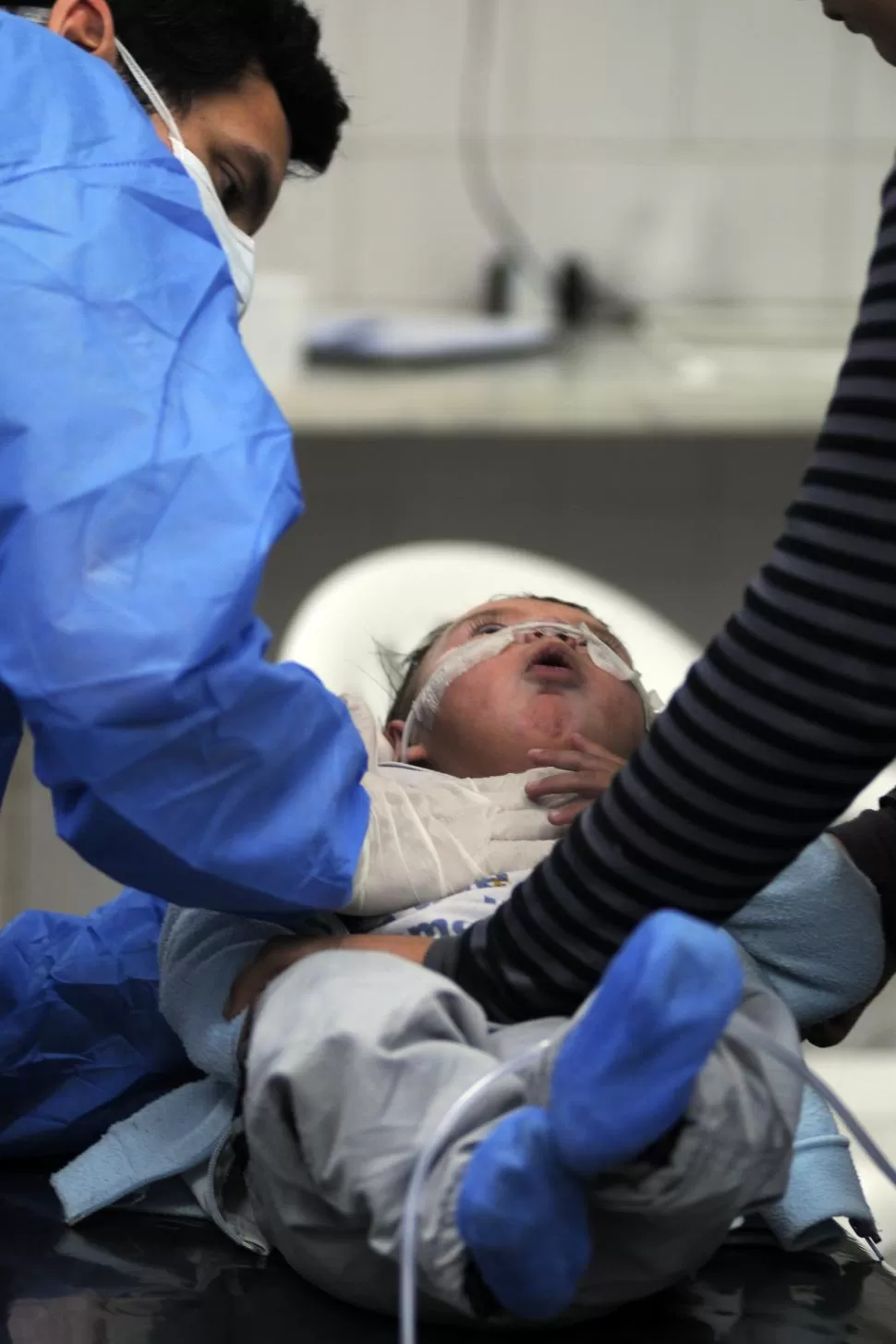 Mientras lo hace les explica a las madres las técnicas que ellas deberán replicar en sus casas. Entre paciente y paciente desinfecta la camilla con alcohol. La seguidilla no cesa; así están desde hace varios días. En total contabilizan unos 80 ingresos con niños que presentan cuadros similares.