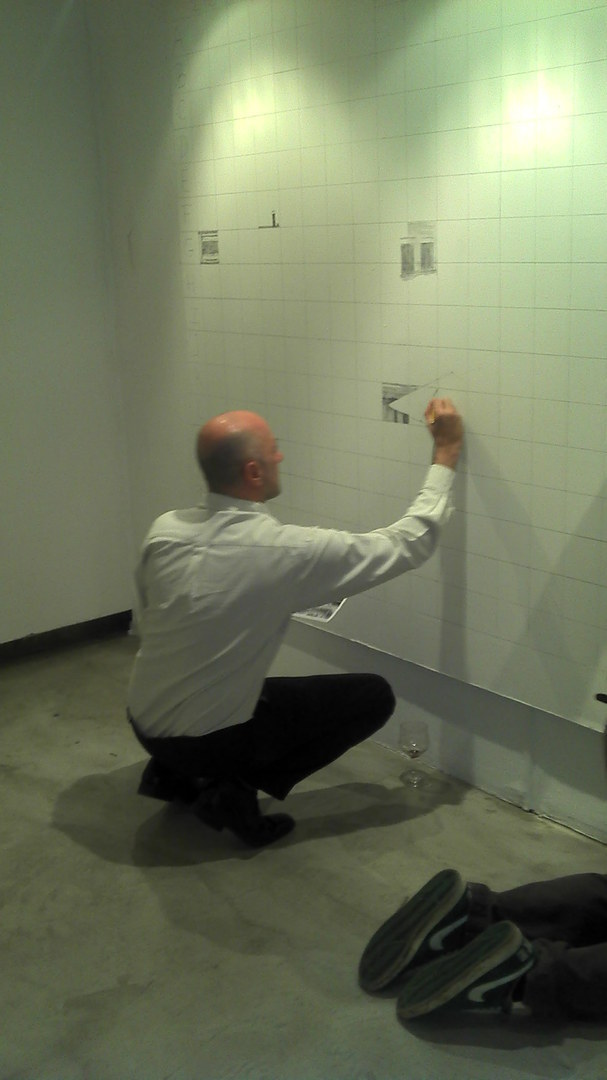 Por ejemplo, los dibujos de Martín Zevi (contornos de figuras de espectadores delineados sobre la proyección de la sombra en otra pared), plantean su obra como una acción artística en vivo, que se irá modificando día a día con la incorporación de nuevos personajes en esa escena.