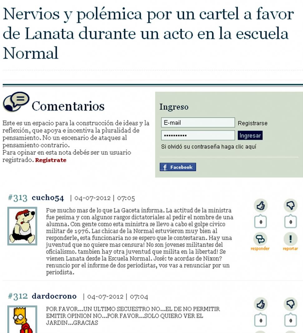 La pancarta que exhibieron alumnos de la escuela Normal para pedir que se transmita por canal de aire el programa "Periodismo para Todos", del periodista Jorge Lanata, generó un debate arduo entre los lectores de LA GACETA en internet, que dejaron más de 300 mensajes. Hasta la medianoche publicaron opiniones a favor y en contra.