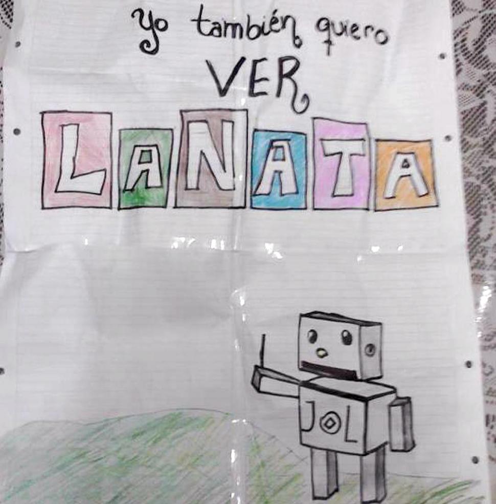 Tiene el mismo tipo de letras de la campaña nacional que se hizo para reclamar la inclusión del canal estatal Paka-Paka en la grilla de señales de empresas de cable. Con esa intención, el grupo de alumnas de la Escuela Normal armó un cartel para pedir que el programa "Periodismo para Todos", que conduce Jorge Lanata, se transmita por la televisión abierta.