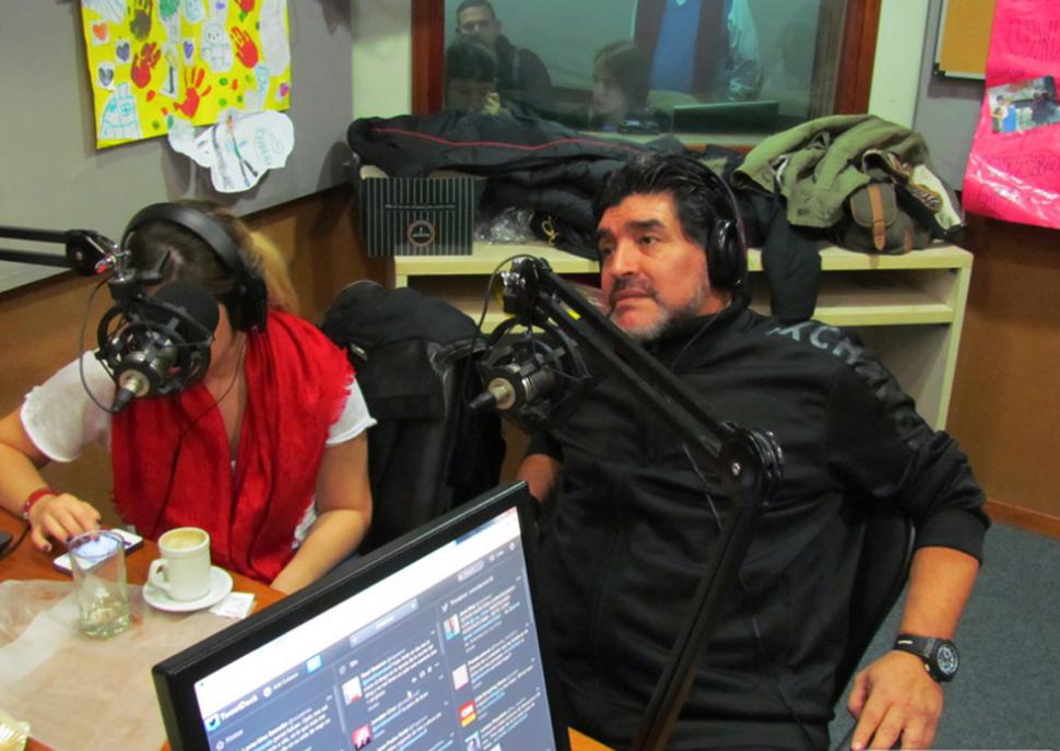Lejos ya de Al Wasl y de regreso en el país, Diego Maradona comenzó a dar vueltas por los medios dejando polémicas declaraciones. Ayer, acompañado por su hija Dalma, el ahora entrenador visitó el estudio de FM Metro y sorprendió a todos con una imitación de Sandro.