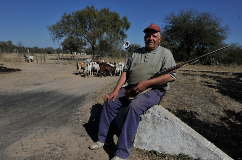 Desde esa vez, Don Mario custodia con su arma en la mano la producción caprina que le asegura el sustento desde hace 64 años. "Nosotros somos trecitos. Mi esposa y mi hijo que me ayuda también. Tenemos en el fondo un estanque que armamos nosotros para que los animales tomen agua. Los criamos y los vendemos", expresa con orgullo.
