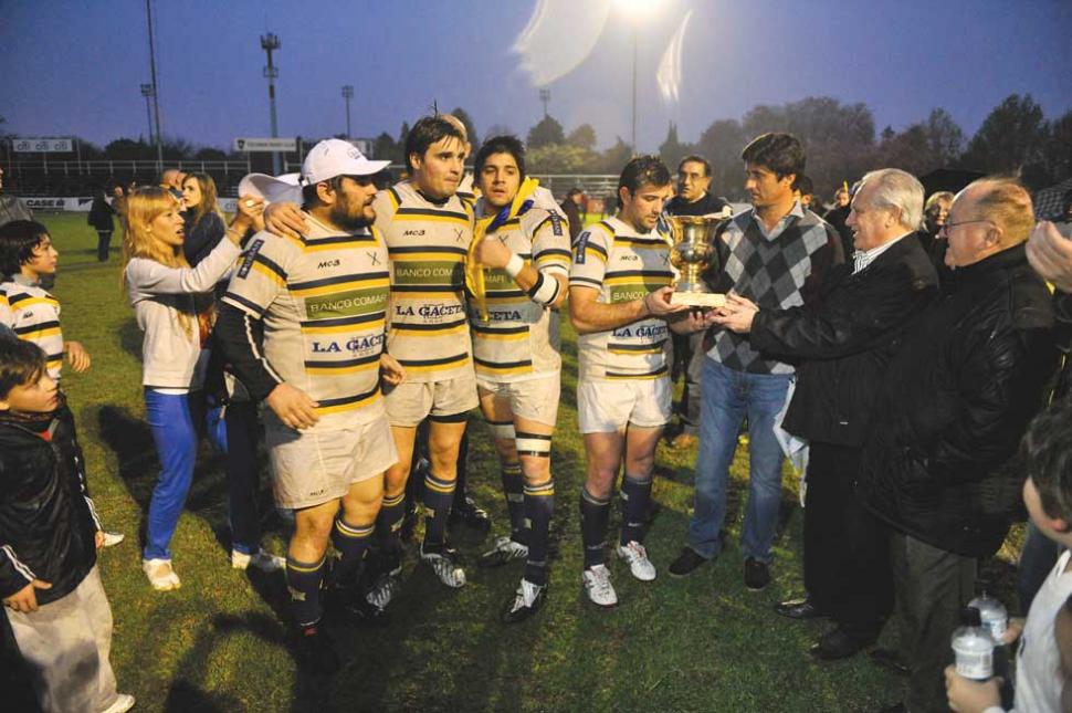 EL MOMENTO TAN ESPERADO. Franco Veglia, presidente de la URT y José Pochat, gerente general de LA GACETA, entregan la copa a Nicolás Cipulli. LA GACETA / FOTOS DE JORGE OLMOS SGROSSO