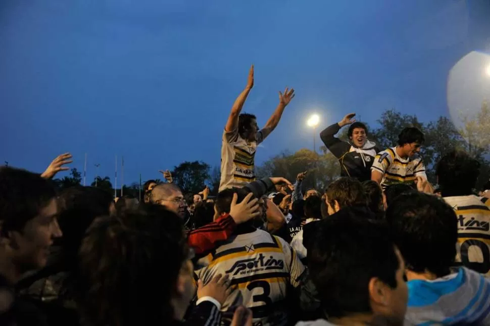 PEQUEÑO GIGANTE. Rodríguez Prados y Mentz son llevados en andas junto a Rez Masud (derecha), el héroe. LA GACETA / FOTOS JORGE OLMOS SGROSSO